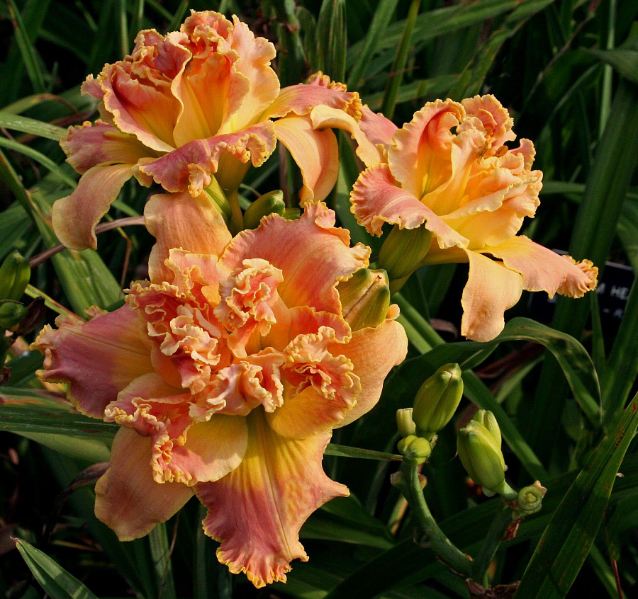 • семена пригодны для проращивания. Лилейник Эрли Эрли Траффл цветет обильно, а махровые лепестки его бутонов имеют довольно необычную расцветку: кремово-розовые с нежной зелено-желтой серединкой, отделенной от основного оттенка темно-розовой полосой. Даже только расцветшие бутончики имеют слегка увядающий вид. А постоянно зеленые листочки кустов украсят клумбу даже зимой.