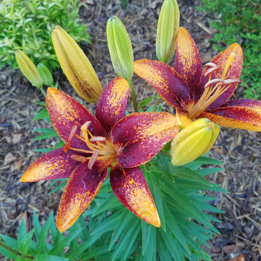 Окраска цветка : желтый с густым насыщенно-винным крапом