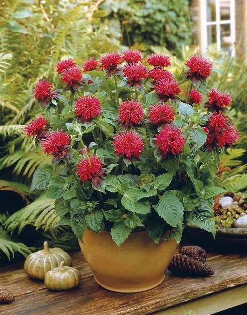 Рассада монарды (дикого бергамота) гибридной Fireball относится к одним из неприхотливых растений, которые подходят для выращивания в смешанных цветниках. Многолетник хорошо переносит любые почвы и разные уровни освещенности. В уходе сорт не требователен. Высота монарды гибридной Fireball около 70-80 сантиметров. Плотные шарообразные цветки имеют винно-красный цвет и украшают куст с июня по август. Они источают приятный цветочный аромат и привлекают на участок пчел.