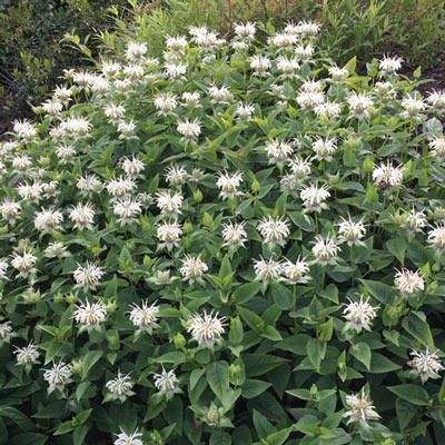 Саженцы Монарды гибридной Bee-Bright (Мonarda hybr.) многолетнее растение с прямостоящими стеблями. Листья ароматные, обладают антисептическим свойством. В высоту достигает не боле 40 сантиметров. В диаметре 45 сантиметров. Лучше всего растет на солнечных пространствах. Не переносит сильный ветер. Морозостойкое растение, устойчиво к вредителям и болезням. Би Брайт цветет белоснежными цветками, которые собраны в густое соцветие. Цветет с июня по август месяц. Хорошо смотрится в центре клумбы рядом с флоксом, аконитом или декоративными злаками.