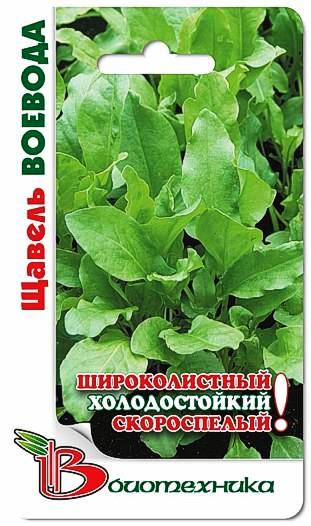Семена щавеля "Воевода" (Voevoda) сеют в открытый грунт на глубину 1-1,5 см. Всходы хорошо реагируют на минеральные удобрения и регулярные поливы. Посев производят в июне-июле. Собирают урожая на следующий год в мае-июне. Сорт очень скороспелый, легко переносит весенние заморозки. Растение способно прорастать даже при температуре чуть выше нуля градусов. Вегетационный период составляет 40-45 дней. Листья крупные, копьевидные, прямостоячие, темно-зеленого цвета, собраны в розетку, черешок со слабой антоциановой окраской. В пищу используется в свежем виде или после различной переработки. Культура ценится за высокое содержание витаминов С, B1, B2, PP, солей железа, кальция, магния и органических кислот. Сорт пригоден для ранневесенней выгонки из двулетних корневищ в парниках.