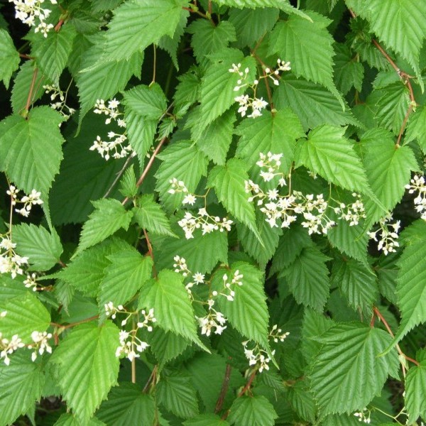 Саженцы стефанандры Танаки подарят саду высокорослый раскидистый кустарник с изящными листьями и воздушной кроной. Именно форма листьев и составляет основную декоративность кустарника. Основание листочка сердцевидное, а конец сильно заостренный, края крупнозубчатые.