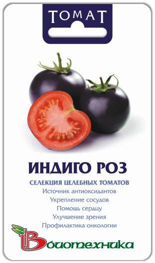 Томат Indigo Rose ( Индиго Роуз) также известный как фиолетовый томат. Это сорт стал победителем выставки Челси (Лондон) в 2014 году. Это сорт получен Джимом Майерсом в университете штата Орегон при скрещивании  диких видов томата.  Этот сорт уникальный не только по окрасу (с наружи фиолетовый внутри красный), но и по содержанию антоцианов, которое больше чем в чернике. Основным достоинством является, то что  этот сорт устойчив к фитофторозу и пониженным температурам. Сорт устойчив к заморозком до – 5 С.